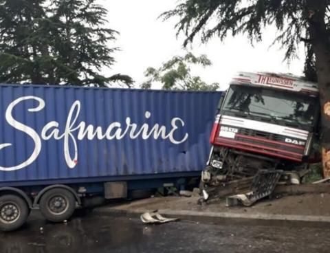 დაჯახების შედეგად ერთი ტრაილერი ხრამში გადავარდა.
