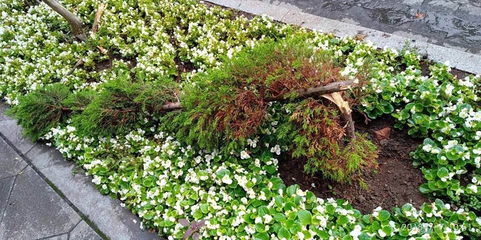 ქუთაისში, მერიის წინ უნიკალური ჯიშის მცენარეები დააზიანეს