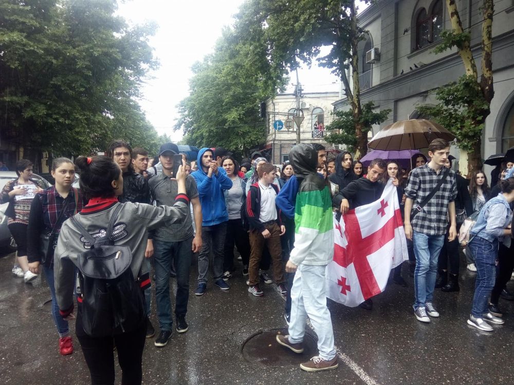 ახალგაზრდების აქცია ძლიერი წვიმის მიუხედავად არ წყდება.