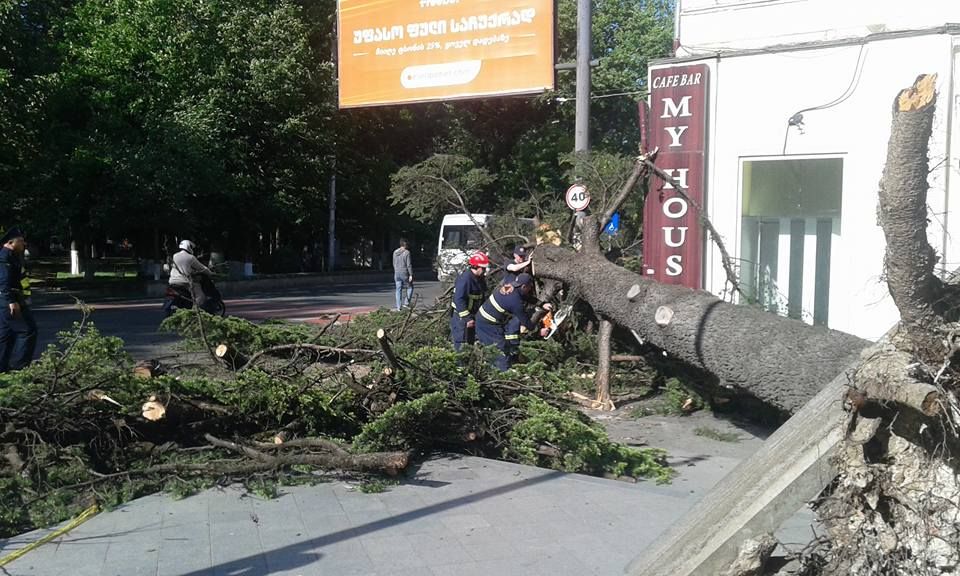 ქუთაისში ძლიერმა ქარმა ასწლოვანი ხე წააქცია