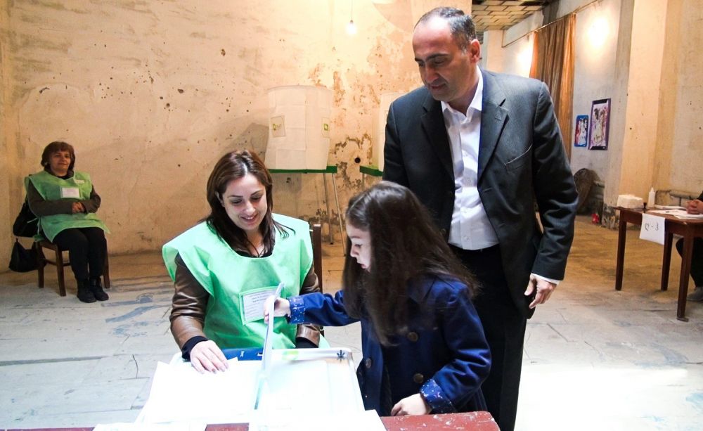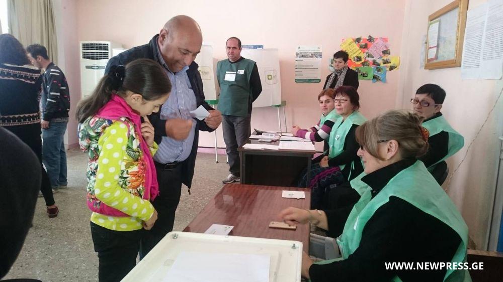 მერობის კანდიდატი საარჩევნო უბანზე შვილთან ერთად მივიდა.