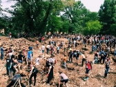 სპეციალური ტექნიკის საშუალებით გრუნტში ხიმინჯების ჩამაგრების პროცესი მიმდინარეობს.