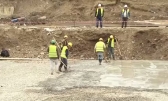 სპეციალური ტექნიკის საშუალებით გრუნტში ხიმინჯების ჩამაგრების პროცესი მიმდინარეობს.