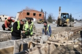 სპეციალური ტექნიკის საშუალებით გრუნტში ხიმინჯების ჩამაგრების პროცესი მიმდინარეობს.
