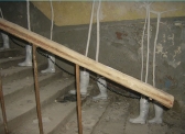 სპეციალური ტექნიკის საშუალებით გრუნტში ხიმინჯების ჩამაგრების პროცესი მიმდინარეობს.