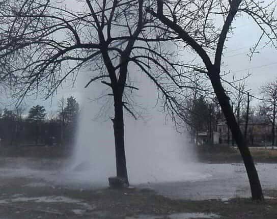ქუთაისში, ახალგაზრდობის გამზირზე დაზიანებული მილიდან წყალი იღვრება.