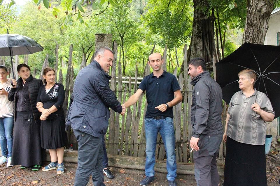 იოსებ მაკრახიძე და თემურ ხუბულური მოსახლეობას ხვდება.
