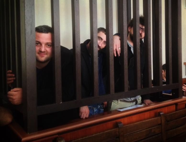 "თავისუფალი ზონის" წევრები: ნიკა ნარსია, მირიან დეისაძე და კახა გაბუნია ქუთაისში, 2 ოქტომბერს პარლამენტთან "რუსთავი 2"-ის მხარდასაჭერად გამართული აქციის დროს ჩადენილი ქმედებისათვის დაააკავეს.