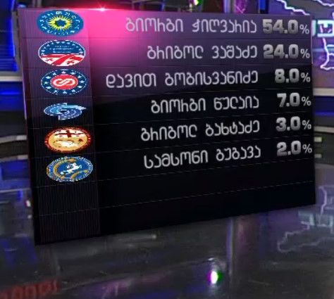 გიორგი ჭიღვარია- 54 %, გრიგოლ ვაშაძე -24 % - ეგზიტპოლების განახლებული მონაცემები