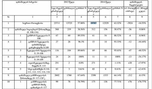 წინა წლის ანალოგიურ საანგარიშო პერიოდთან შედარებით დანაშაულის კლება - 16,55 პროცენტით დაფიქსირდა.