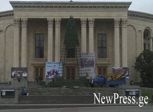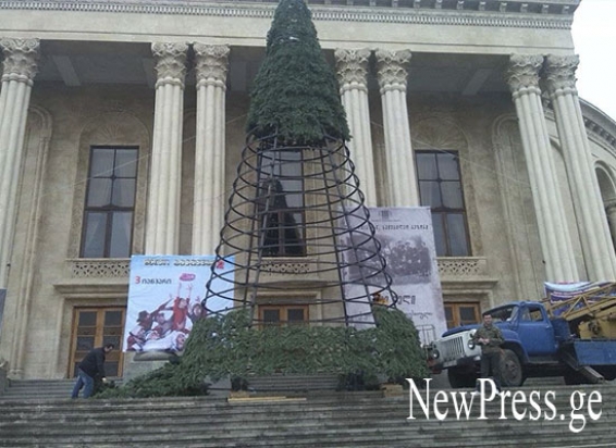 ქუთაისში ცენტრალურ ნაძვის ხეს ამონტაჟებენ