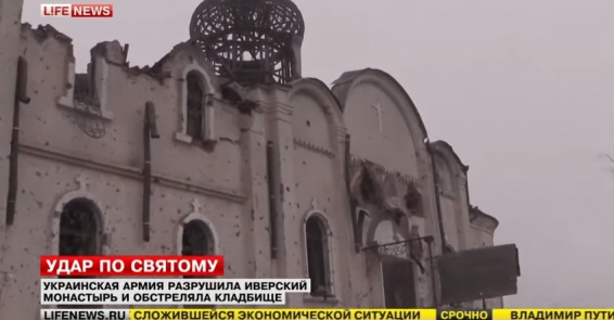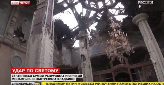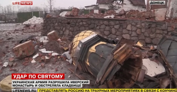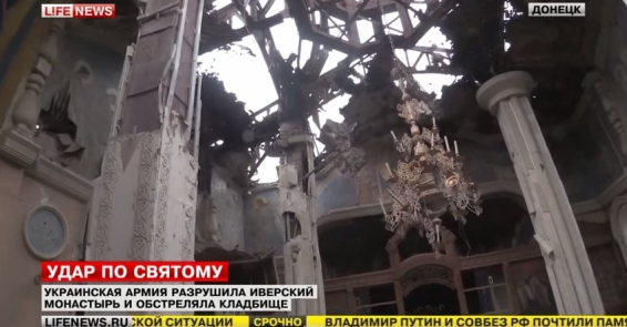 უკრაინაში დამბობვის შედეგად ივერის მონასტერი განადგურდა. დაბობმილი მონასტრის კადრები რუსულმა ტელეარხმა გაავრცელა.