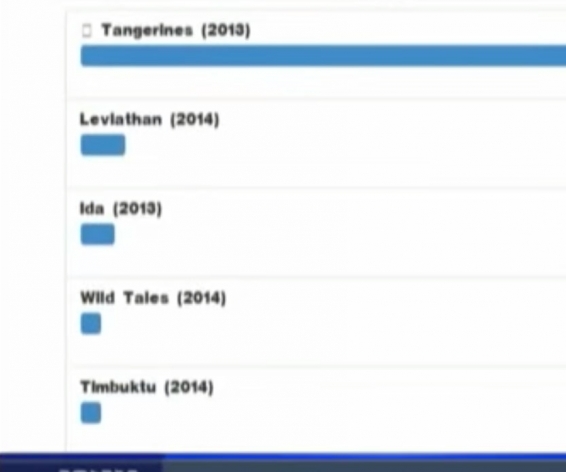 ოსკარზე ნომინირებული ფილმების შესახებ ონლაინ-გამოკითხვა მიმდინარეობს. IMDb-ს კითხვაზე, რომელი ფილმი მიიღებს ოსკარს საუკეთესო უცხოენოვანი ფილმის ნომინაციაში, ზაზა ურუშაძის „მანდარინები“ ლიდერობს. გამოკითხვაში მეორე ადგილზე რუსეთის მიერ წარდგენილი ფილმი „ლევიათანია“, მესამე ადგილზე კი „იდა”.