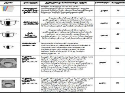 შესყიდვას გეგმავს. ჭურჭლის შესაძენად გაერთიანებამ 19.
