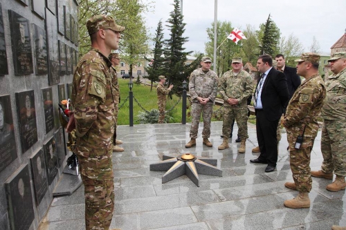 ჯარისკაცებმა საქართველოს ტერიტორიული მთლიანობისთვის საბრძოლო მოქმედებებში და საერთაშორისო მისიებში დაღუპული სამხედროების მემორიალი გვირგვინით შეამკეს.