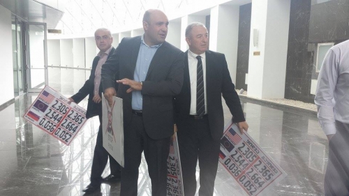 „ერთიანი ნაციონალური მოძრაობის“ წევრები პარლამენტში პლაკატებით გამოცხადდნენ, სადაც აღნიშნულია ლარის კურსის დღევანდელი მაჩვენებელი. როგორც საპარლამენტო ოპოზიციის წარმომადგენლები აცხადებენ, ამით მათ სურთ მთავრობის წევრებს, განსაკუთრებით კი, ფინანსთა მინისტრს თვალნათლივ დაანახონ ქვეყანაში არსებული ეკონომიკური მდგომარეობა.