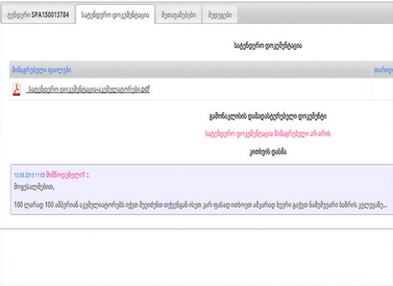 იმ შემთხვევაში, თუ ტენდერში ყველაზე დაბალი ფასის წინადადების მქონე პრეტენდენტის მიერ სისტემაში