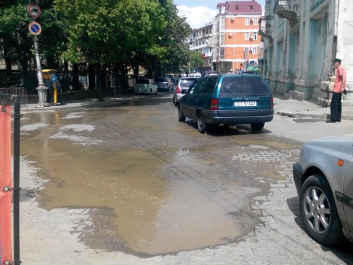 მესხიშვილის თეატრის მიმდებარედ, ნიუპორტისა და კოსტავას კვეთაზე დაზიანებული მილიდან წყალი ქუჩაში მიედინება. მოსახლეობის თქმით, არსებული მდგომარეობა რამდენიმე საათია გრძელდება.