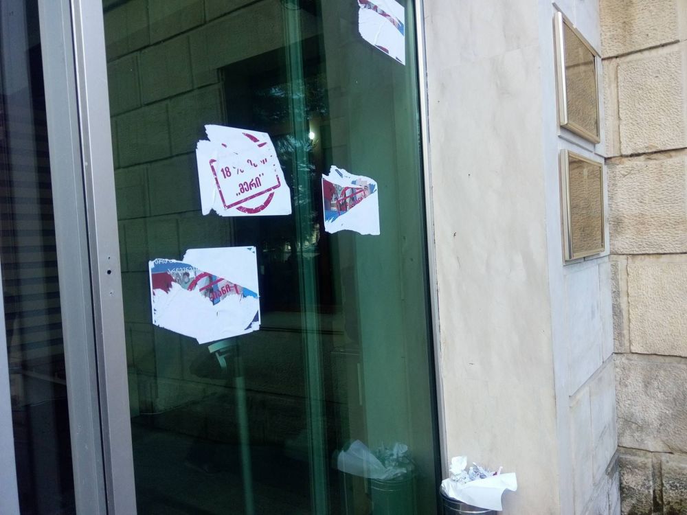 აქციის მონაწილეებმა მერიის შესასვლელში სხვადასხვა პლაკატები გააკრეს, მათ შორის საარჩევნო კომისიის თავმჯდომარეების გამოსახულებით, რომლებმაც, მათი თქმით, არჩევნები გააყალბეს.