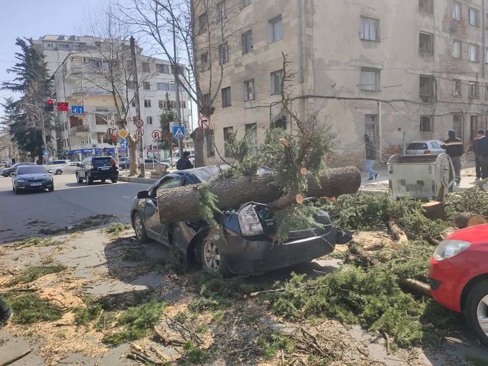 ქალაქის მასშტაბით, სტიქიამ სხვადასხვა ქუჩაზე ასწლოვანი ხეები მოგლიჯა.