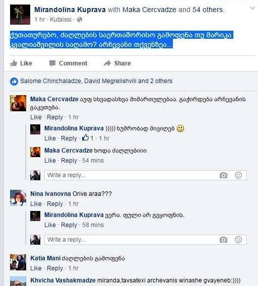 ქუთაისის მერიის კულტურის განყოფილების უფროსის მირანდა კუპრავას მიერ სოციალურ ქსელში გამოქვეყნებული განცხადებები განსჯის საგანი არაერთხელ გამხდარა. თუმცა, თანამშრომლის მიერ გამოქვეყნებული ბოლო პოსტის გამო ბოდიშის მოხდა თავად ქუთაისის მერს მოუხდა.