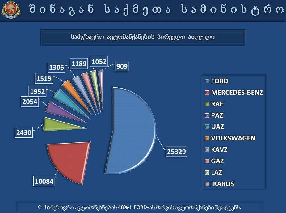 შინაგან საქმეთა სამინისტროს საინფორმაციო-ანალიტიკური დეპარტამენტი კვევაის შედეგებს აქვეყნებს, რომლის თანახმადაც ავტოპარკი საქართველოში ყოველწლიურად იზრდება.