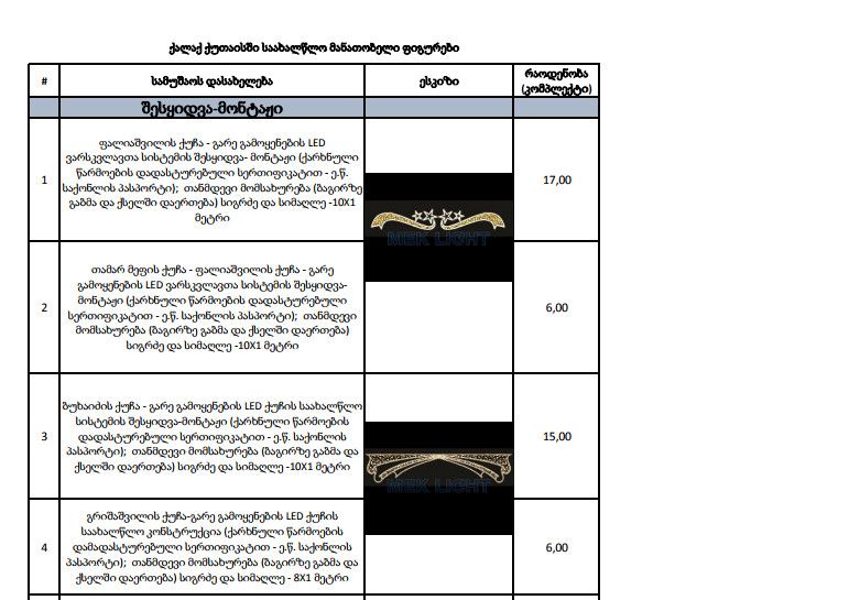 გარდა ამისა, საახალწლოდ ქალაქის მორთვისათვის ქუთაისის მერიამ 50 781 ლარის ტენდერი გამოაცხადა. ამ შემთხვევაშიც პირველად გამოცხადებული ტენდერი ჩაიშალა და მერიას გამარჯვებულის გამოსავლენად ტენდერის განმეორებით გამოცხადება დასჭირდა.