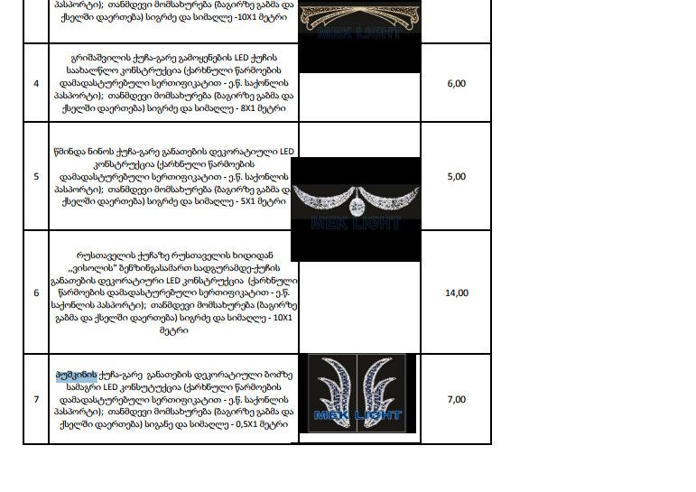 საახალწლო ფიგურების მონტაჟისათვის 2017 წლის 6 ნოემბერს გამოცხადებული ტენდერი ჩაიშალა, რის შემდეგაც გადაწყდა ახალი მანათობელი ფიგურების ექსკლუზიური ხელშეკრულების საფუძველზე შესყიდვა–მონტაჟი.