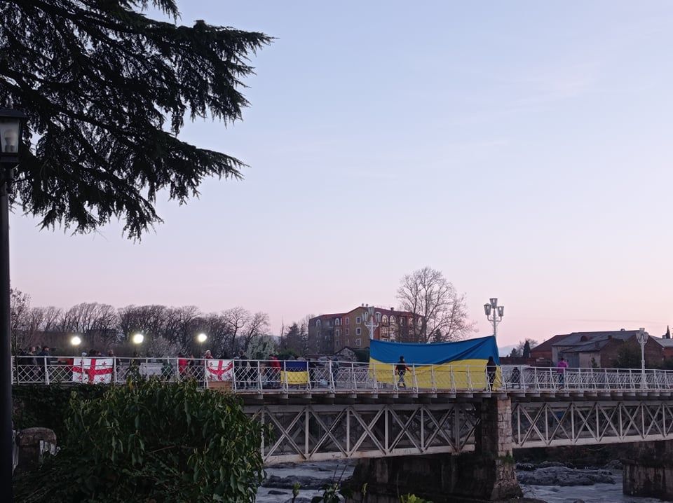 აქციაზე შეკრებილმა მოქალაქეებმა ამავე დროს პატივი მიაგეს რუსეთ-უკრაინის ომში დაღუპულების ხსოვნას,