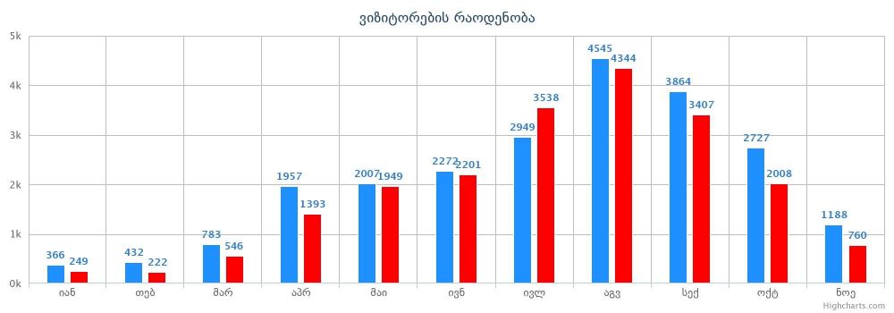 ქალაქში ყველაზე მეტი ვიზიტორი ივლისში, აგვისტოსა და სექტემბერში შემოვიდა.
