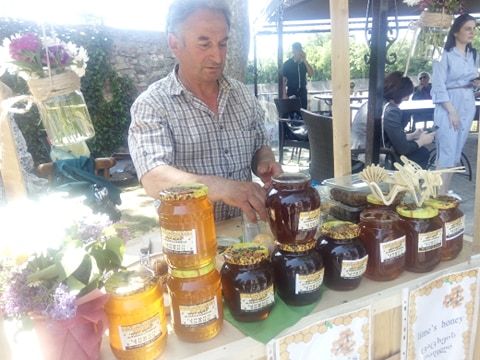 "ცაცხვის, წაბლის და მაისის თაფლი მაქვს წარმოდგენილი, ასევ გვაქვს ფიჭა. ჯანსაღი და სასარგებლო პროდუქციაა. 120 ოჯახს ფუტკარს ვამთაბარებ. რეალიზაცია ძალიან მიჭირს, ფესტივალებზე დავდივარ და მაღაზიებს ვაბარებ. მთავრობა არ გვეხმარება. ევროპაში ვერ გავიდა თაფლი. თურქეთში გადიოდა და ვეღარ გადის. ადგილობრივი ბაზარი არ არის საკმარისი"-განაცხადა კოოპერატივი"სანთელის" წარმომადგენელმა გოგი ჩაჩანიძემ.